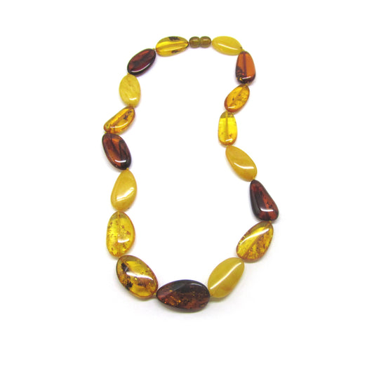 Baltic Amber Beaded Necklace - Multi-shades and Knotted with Twist Clasp