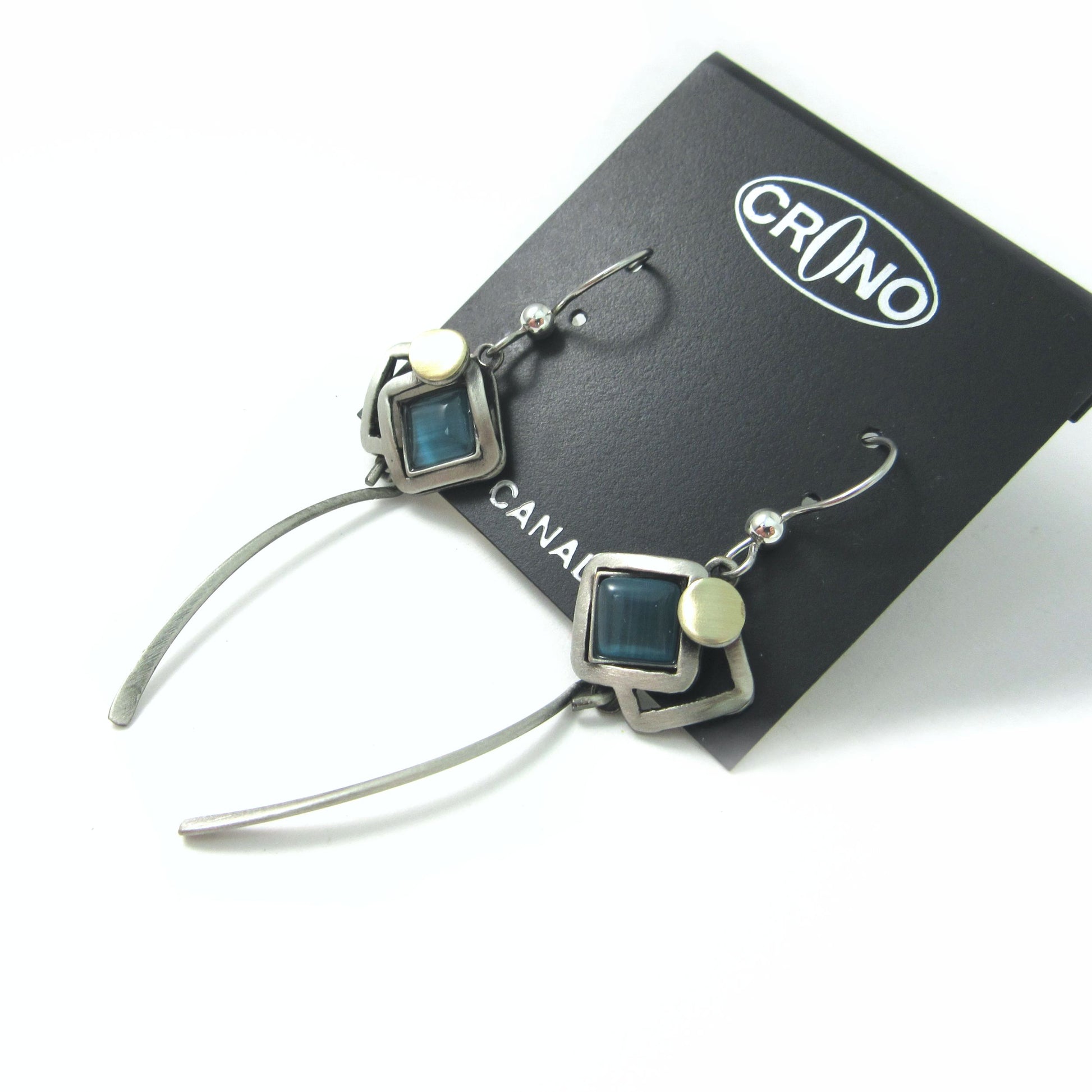 These earrings were made in Montreal, Canada by designer Christophe Poly. His company is called Crono Designs. The earrings are for pierced ears and have surgical steel hooks for sensitive skin.