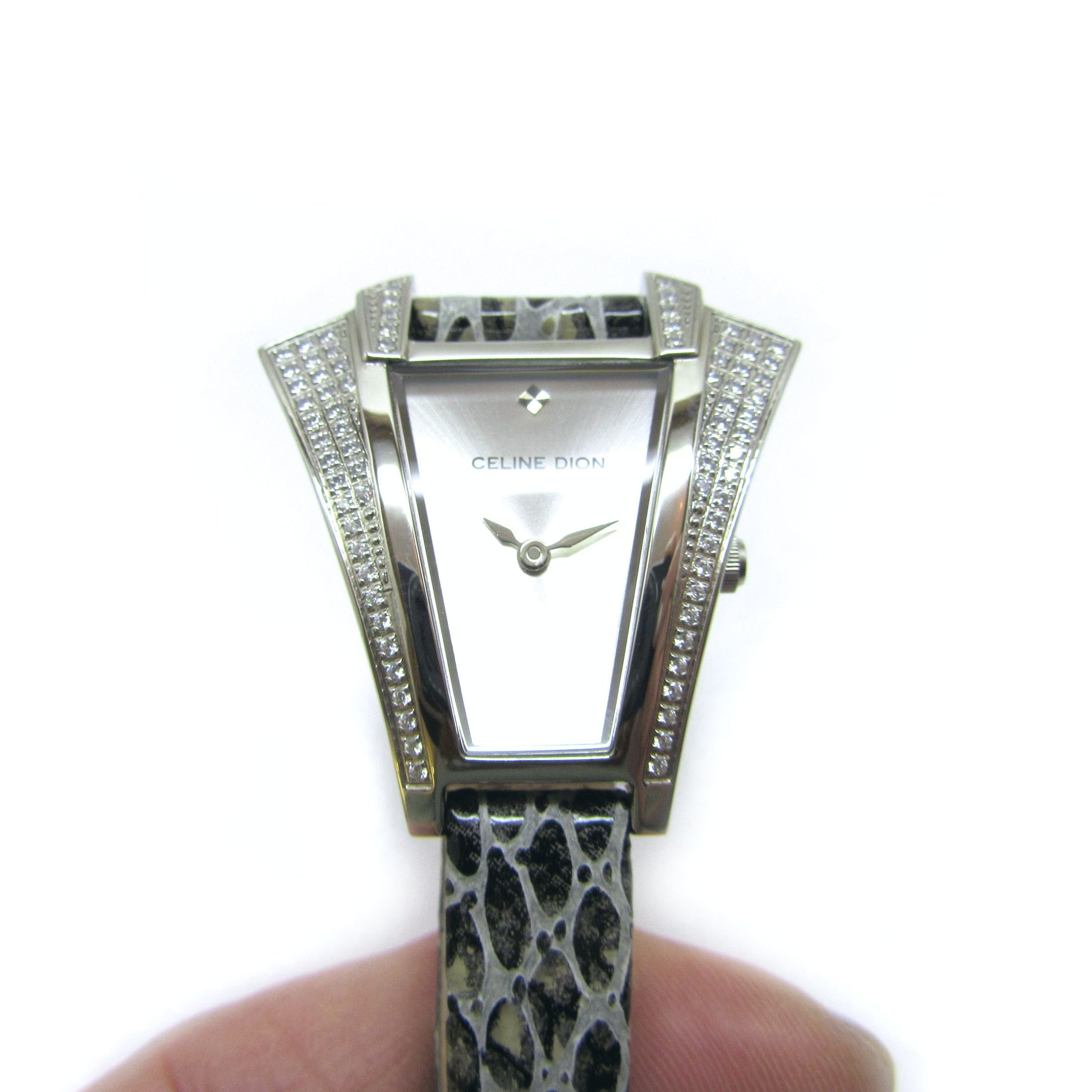 CELINE DION - Unique Crystal Case with Animal Print Band Wristwatch