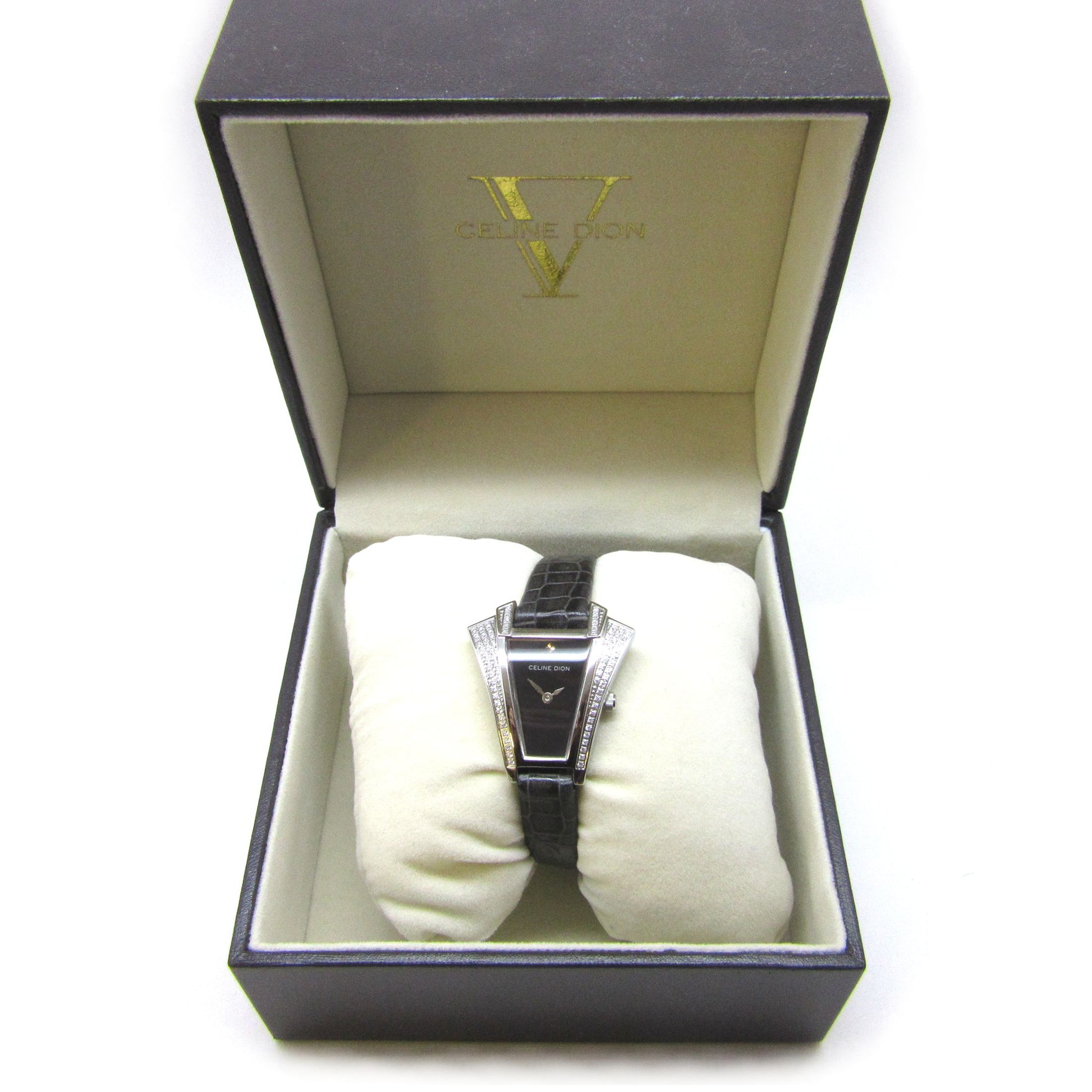 CELINE DION - Unique Crystal Case with Black Band Wristwatch
