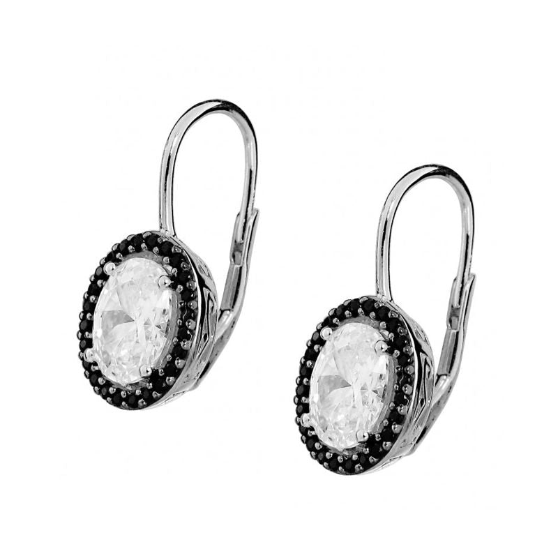 Black and Clear Cubic Zirconia Oval Leverback Earrings - AR-E44