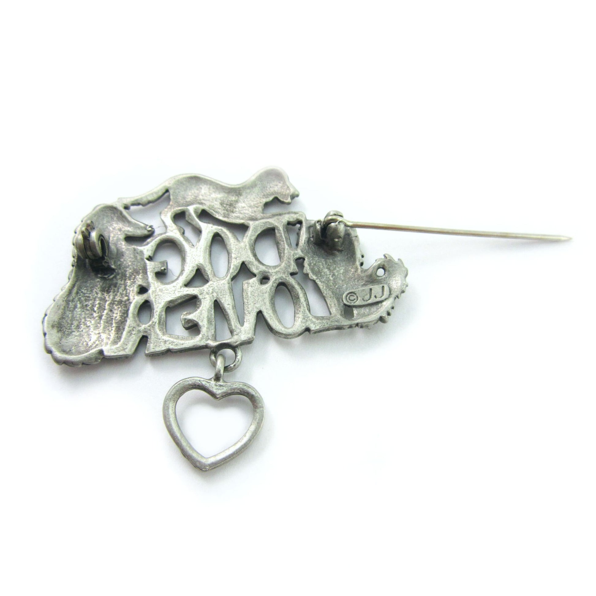 Handmade and vintage Dog Lover pewter brooch from Ontario, Canada (Chelsea Pewter acquired the renowned Jonette Jewelry line in 2007). Many of the pieces, stamped JJ on the back, were from the 1970s & 80s when the mark was first used.