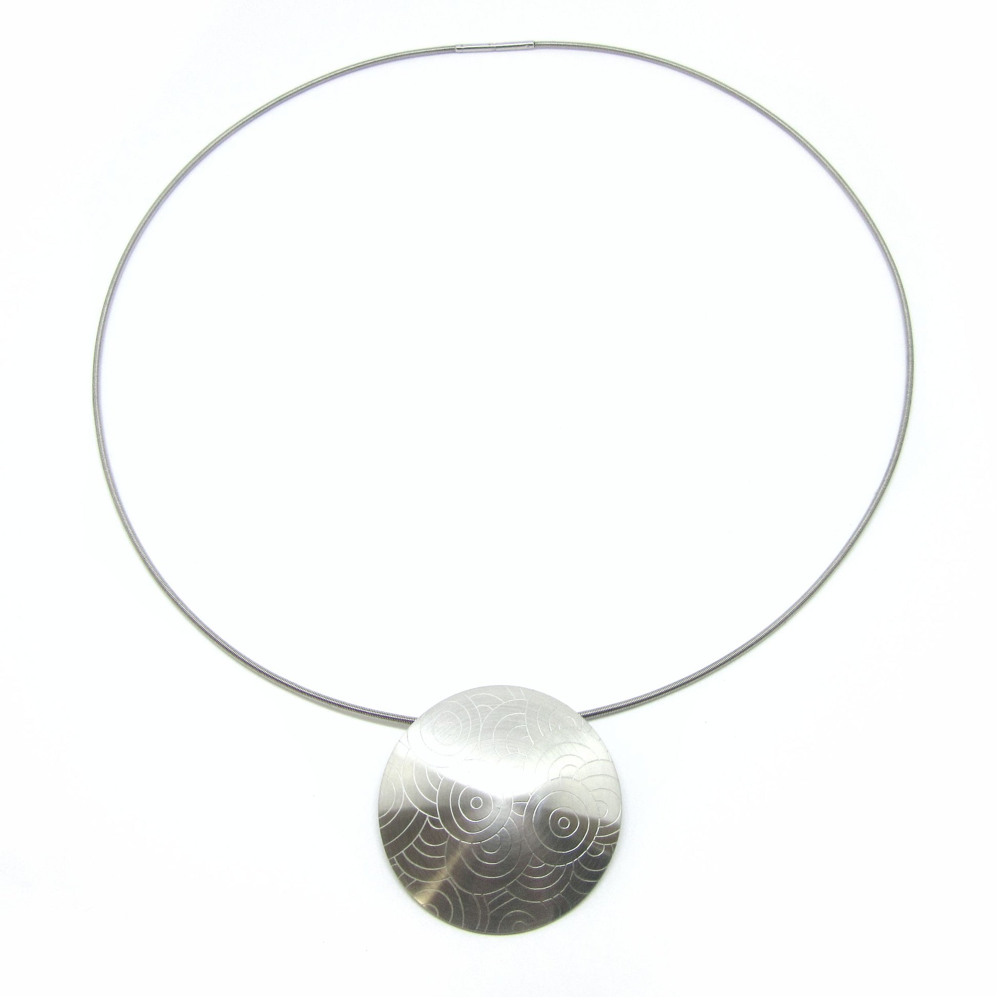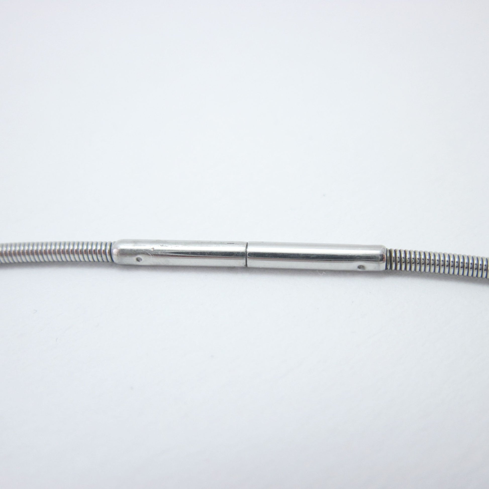 Stainless Steel jewellery is hypoallergenic and guaranteed to be completely nickel-free. The neck-wire is 20" in length and has a clasp that you push in and turn a 1/4" to undo. Do the reverse action to 'lock it'.