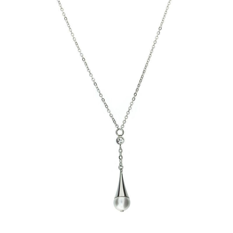 STEELX Necklace with Modern Pendant - Clear Crystal and Faux Pearl - 9146