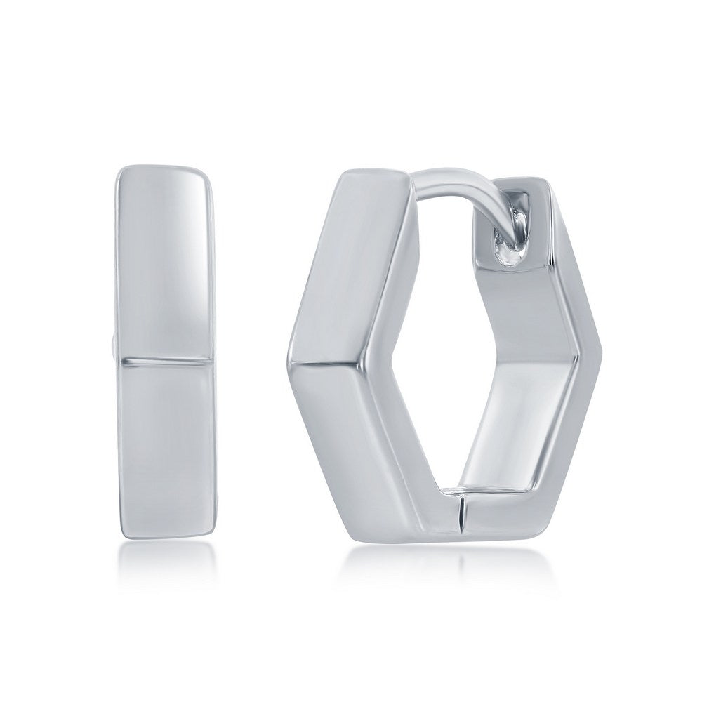 Sterling Silver Hexagon Geometric Shiny Huggies - Yellow Gold or Rhodium Plated
